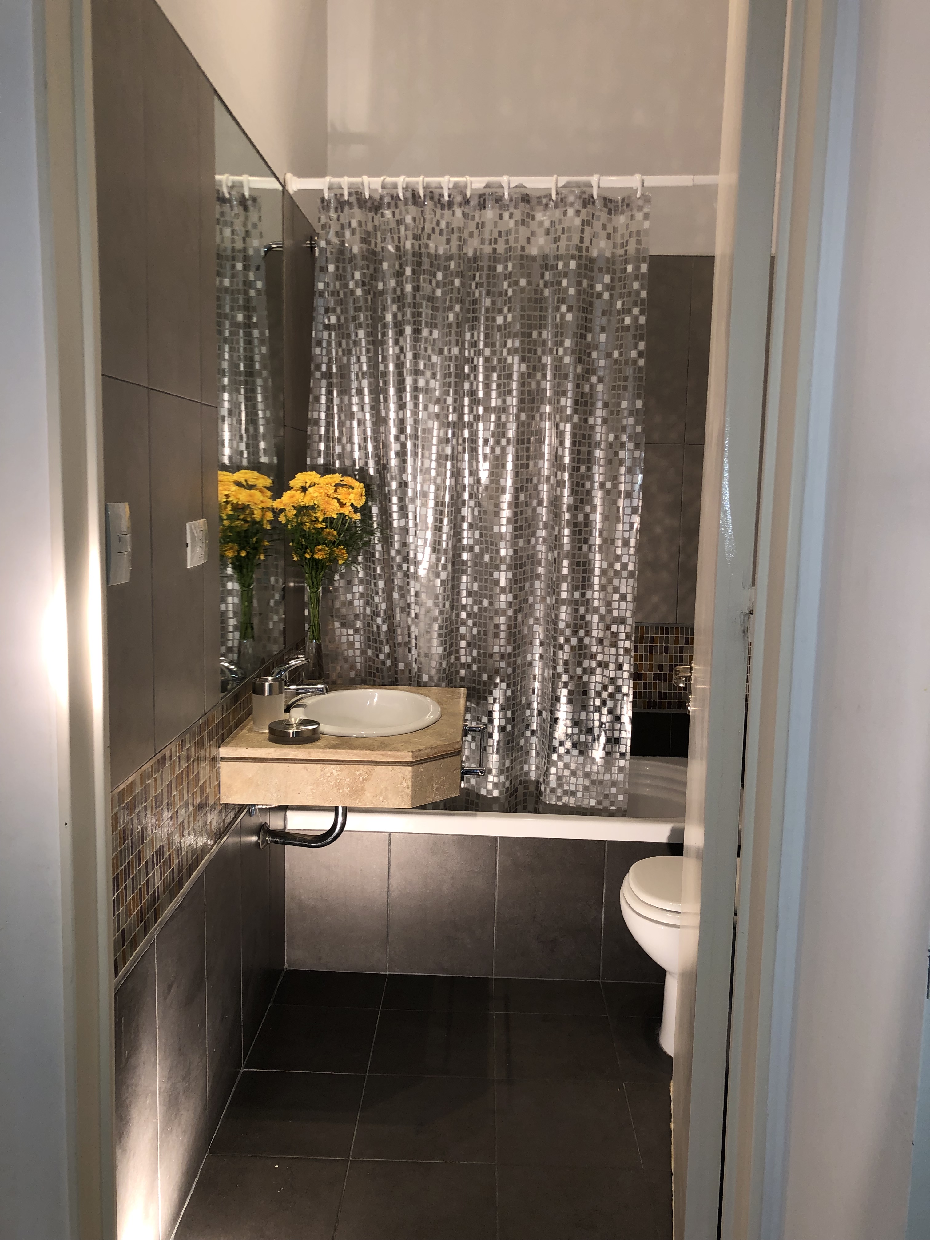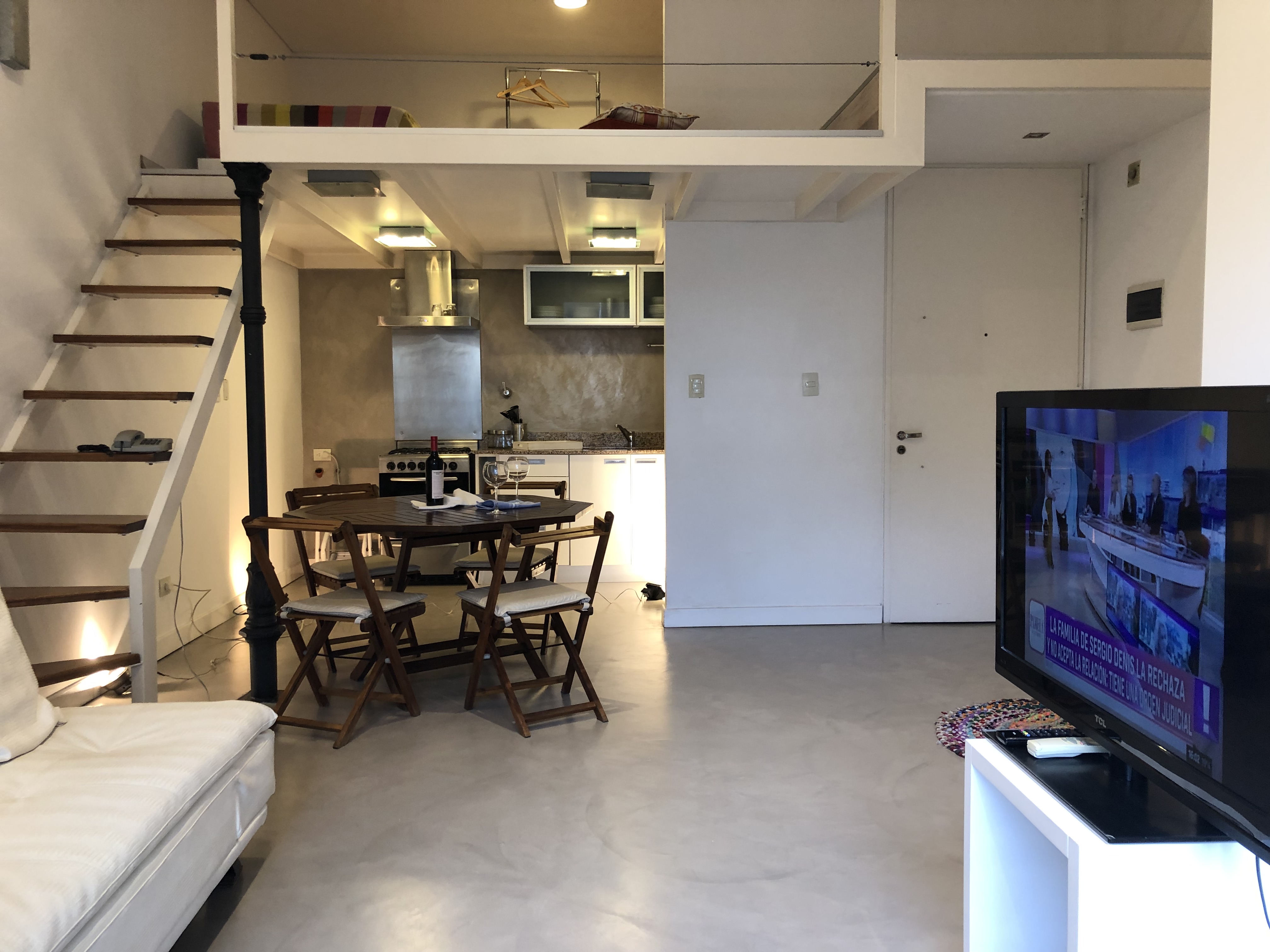 Duplex en este lujoso complejo que ocupa un predio de mas de una manzana. Ideal cuatro personas super comodas, camas sommiers singles de categoria, wi fi, caldera, aire acondicionado, cable, televisor LCD, ropa de cama de primera calidad todo a nuevo. AMENITIES: Dos piletas de natacion olimpicas para invierno y verano, amplio parque arbolado, parrillas, microcine, laundry, Spa, jacuzzi, dos salones de usos multiples para eventos. Seguridad las 24 hs. Espectacular acceso por tren o subte a solo tres cuadras. A tan solo minutos de microcentro. En nuestros alojamientos esta incluida toda la ropa de blanco: sabanas, toallas y repasadores, disponen ademas de desayuno seco: cafe, te, azucar y edulcorantes.