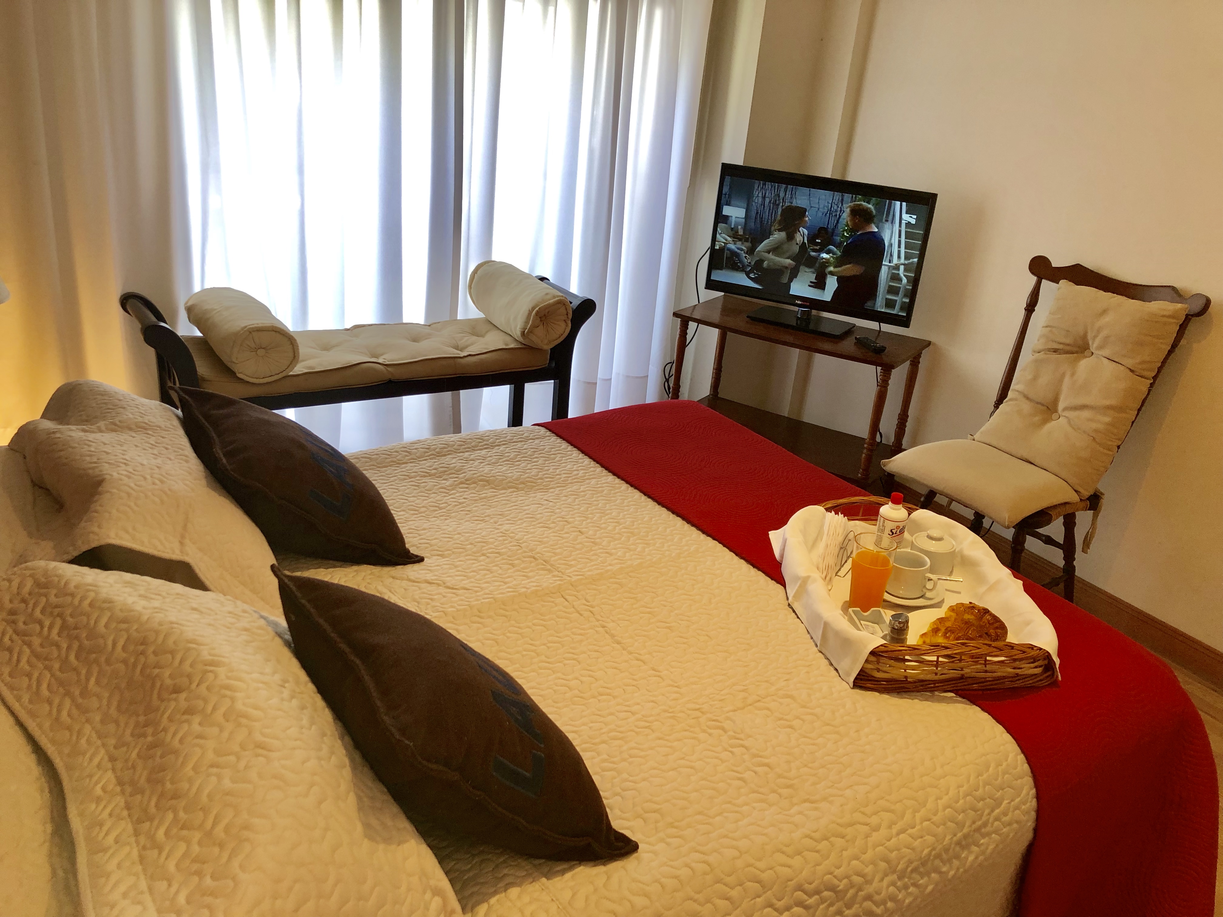 En pleno Palermo Soho Importante departamento muy bien equipado. En la mejor zona de Palermo a la vuelta del Botanico y del Zoo, a tan solo 6 cuadras de Plaza Serrano la zona mas de moda de tiendas, boliches, bares y los mejores resto, y a 7 cuadras de alto palermo shopping. Por su ubicación a pasos de los bosques de Palermo podrá disfrutar de infinidad de entretenimientos, alquiler de bicicletas, clases de Gym al aire libre, ferias artesanales, conciertos en espacios abiertos, etc. Transportes: a la vuelta del departamento esta la salida del subte b, varias lineas de colectivo a solo una cuadra sobre Av. Santa Fe. Servicios: wi-fi 50 megas, cable, telefono. equipado con: freezer, microwave, doble toaster, licuadora, aparatos de tv en todos los ambientes, dos equipos de aire acondicionado, lavarropas-secarropas, losa radiante, seguridad. Consultame por mes o periodos largos En nuestros alojamientos esta incluida toda la ropa de blanco: sabanas, toallas y repasadores, disponen ademas de desayuno seco: cafe, te, azucar y edulcorantes.