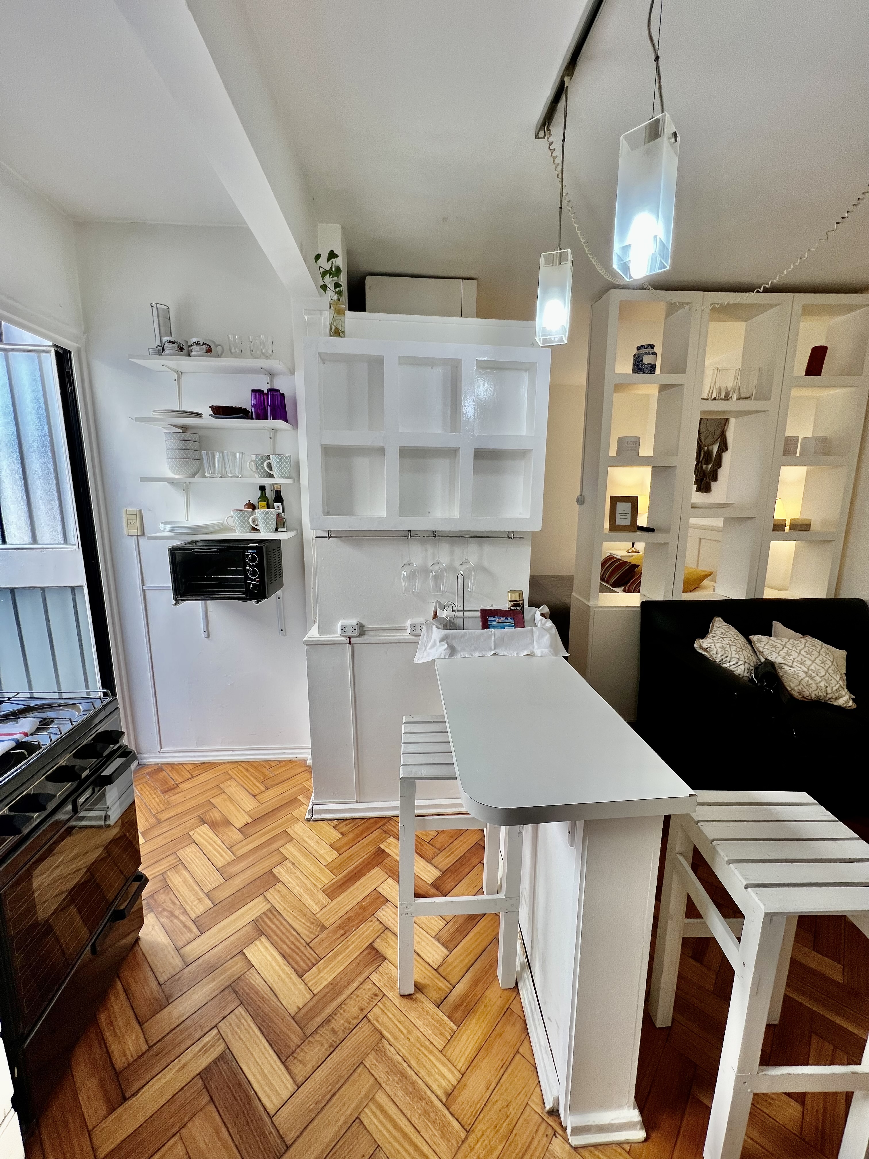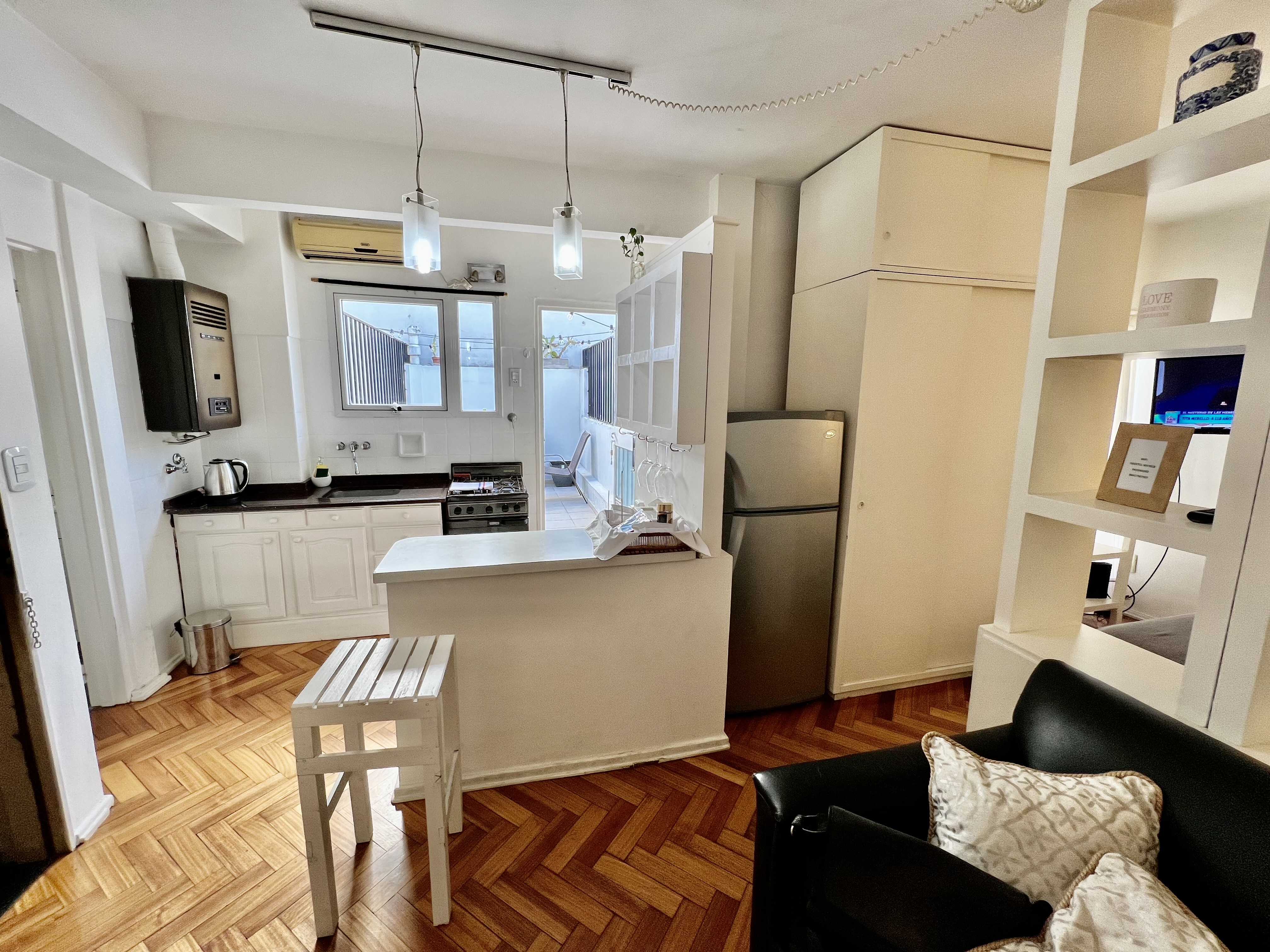 Amplio departamento muy luminoso, ubicado en el ultimo piso del edificio a tan solo 3 cuadras del Alto Palermo shopping. Capacidad para 3 personas, cama Queen y sofa-cama, amplio baño y cocina muy equipada. Terraza con mesa y sillones ideal para desayunar o pequeñas cenas. Es un barrio muy seguro y pintoresco de Buenos Aires. Facil acceso a todas las lineas de colectivo y subte de la ciudad. Cerca de restaurantes, tiendas y movida nocturna.