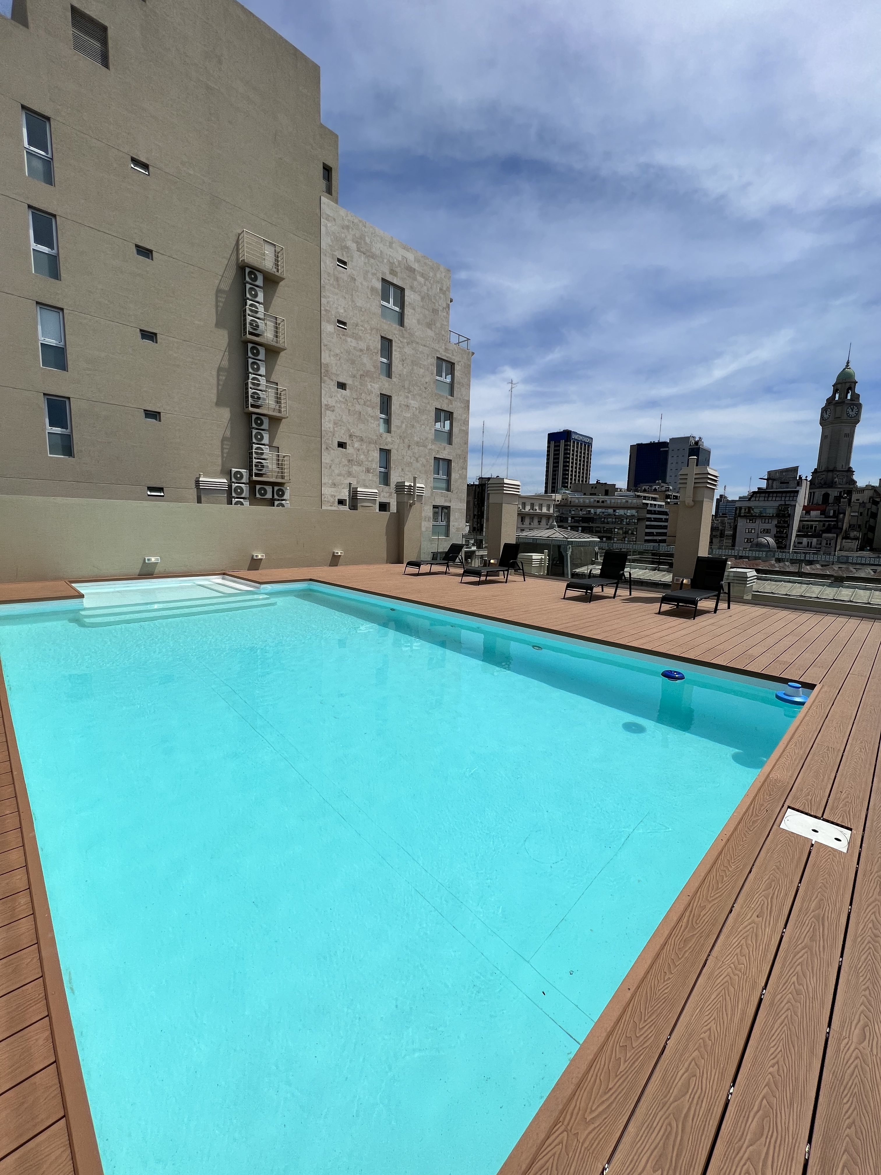 En el distrito historico de Buenos Aires, en el barrio de Montserrat, se encuentra este departamento, impecable, super luminoso, con unas vistas increibles del casco historico, Hermosa pileta de natacion en el roof. Vistas increibles a las cupulas de la antigua Buenos Aires. Comodo de facil acceso. Con estacionamiento pago en el edificio. Ideal para desplazarse a los distintos puntos de interes de esta capital como estrategico para negocios con alcance a todo el centro financiero porteño En nuestros alojamientos esta incluida toda la ropa de blanco: sabanas, toallas y repasadores, disponen ademas de desayuno seco: cafe, te, azucar y edulcorantes.