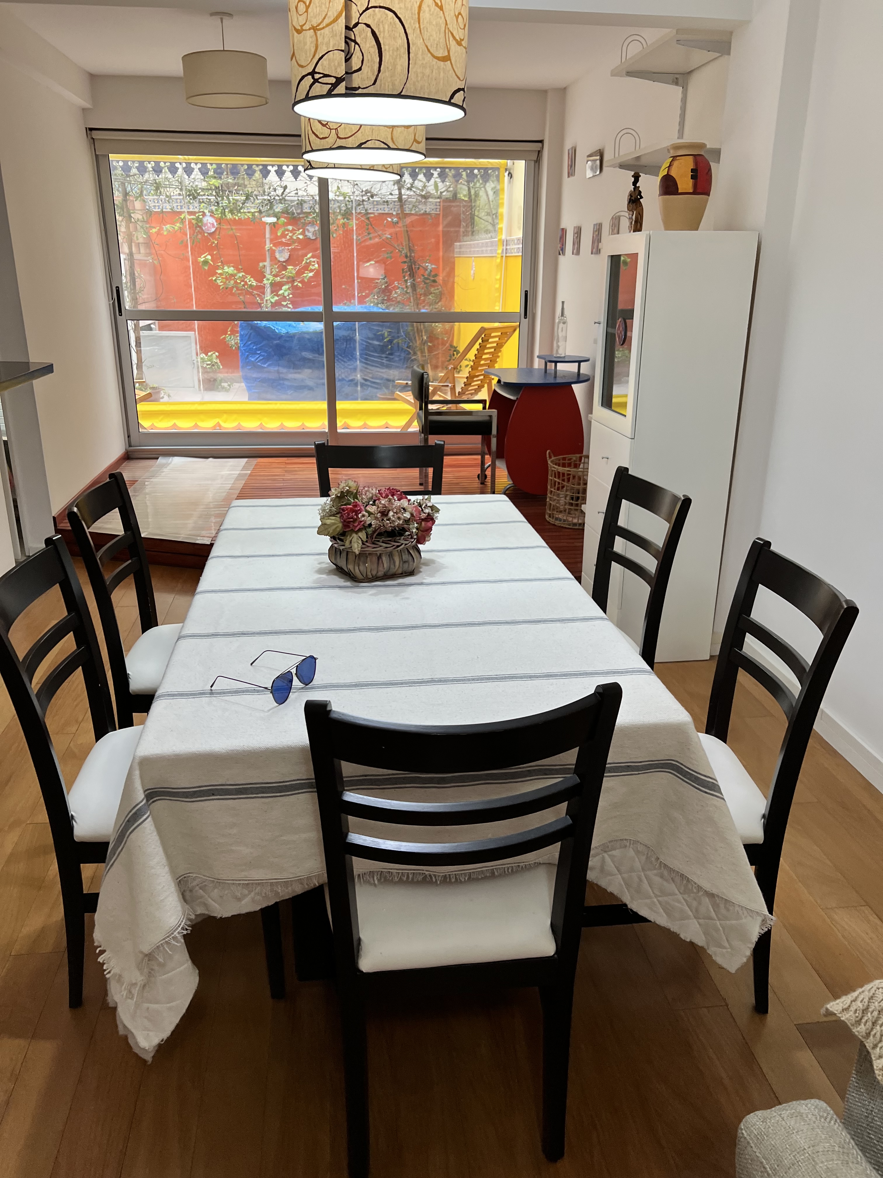 Este departamento es ideal para una estadía larga. A 20mts de Av. Cramer, zona elegante de Belgrano. Sumamente silencioso, amplio y luminoso, importante living comedor, muebles impecables. Cocina altamente equipada, enseres de primerisima calidad. Dormitorio con cama queen y vestidor. Dos baños, lava ropas en la unidad , y lo mejor, un patio lleno de plantas, con parrilla y mesa para comer o desayunar y otra semicubierta para usar aun en día lluvioso. Escritorio para lugar de trabajo.